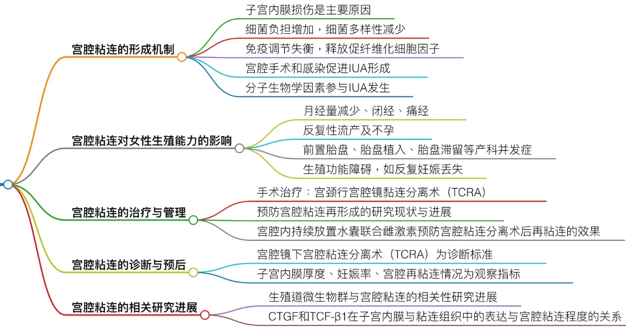 周围型 宫腔粘连带位于子宫后壁、子宫底及子宫角,将宫腔周围部分粘连,子宫角粘连时,输卵管口不能窥见;