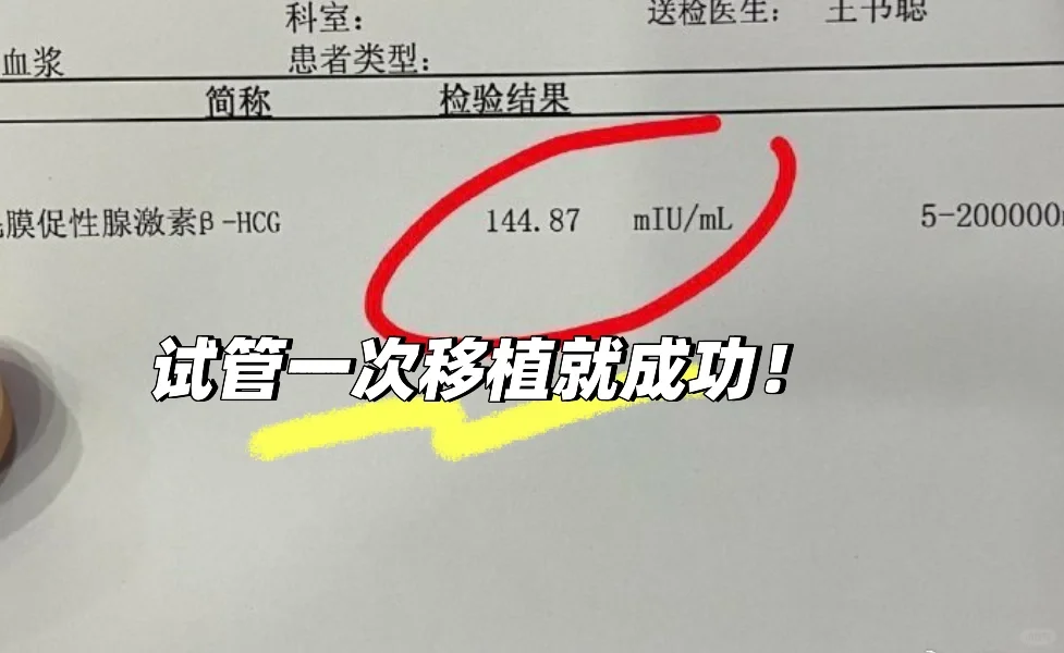们这边,初步了解了下,11月份约了见面沟通,沟通下来大姐对我们表示很信得过,说没必要再比较其他机构了,当场就签约了。果然是生意人,够豪爽!今天是她移植后12天,HCG 144.87,胚胎着床了哦~期待准妈妈后续翻倍顺顺利利,产检一路绿灯!