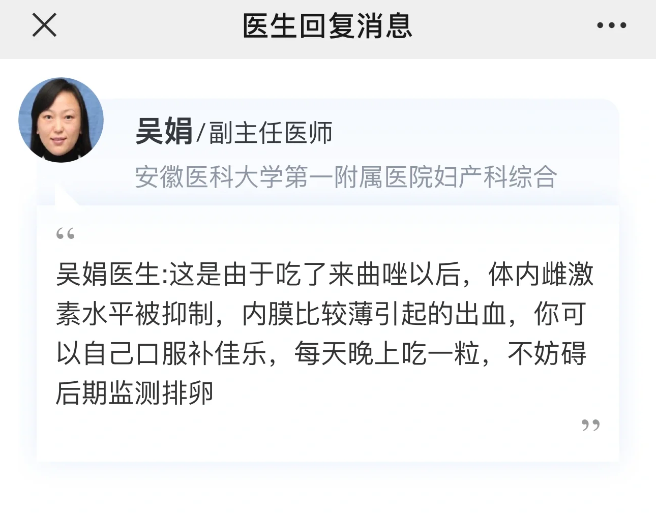 姐妹 你也是吃来曲出血然后吃补加乐就不出了么