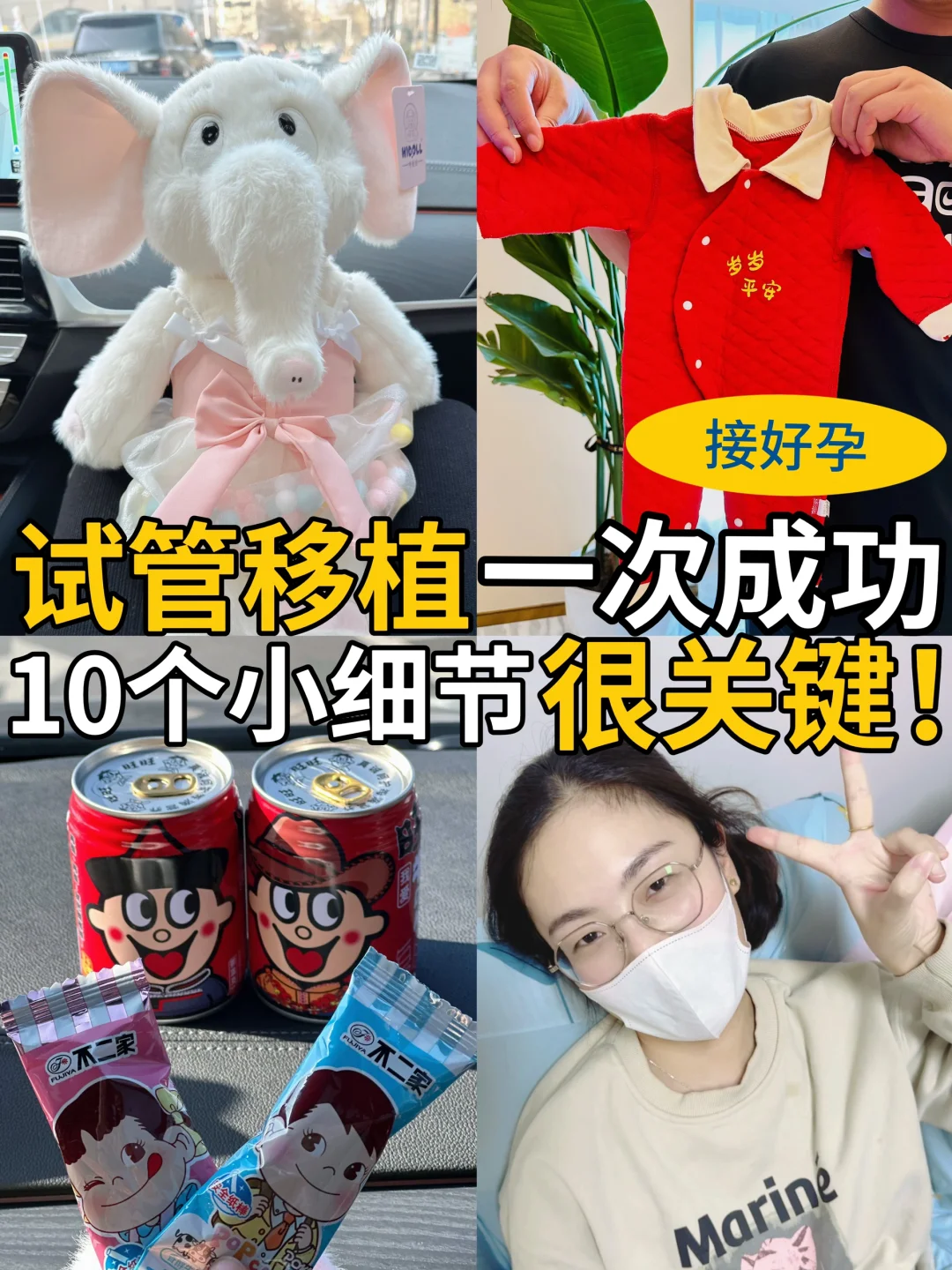 带上宝宝👶喜欢的玩具、棒棒糖还有旺仔牛奶,开开心心接宝宝回家,我移植完就把棒棒糖🍭吃掉啦~